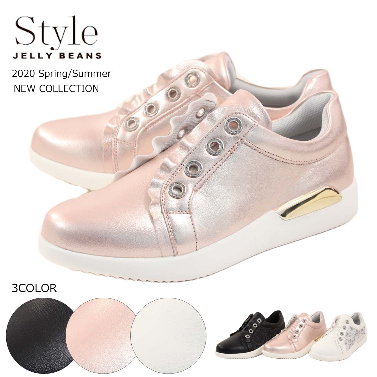 【JELLY BEANS ジェリービーンズ】【スニーカー】レディース 紐なし スニーカー 歩きやすい 厚底 jb6022